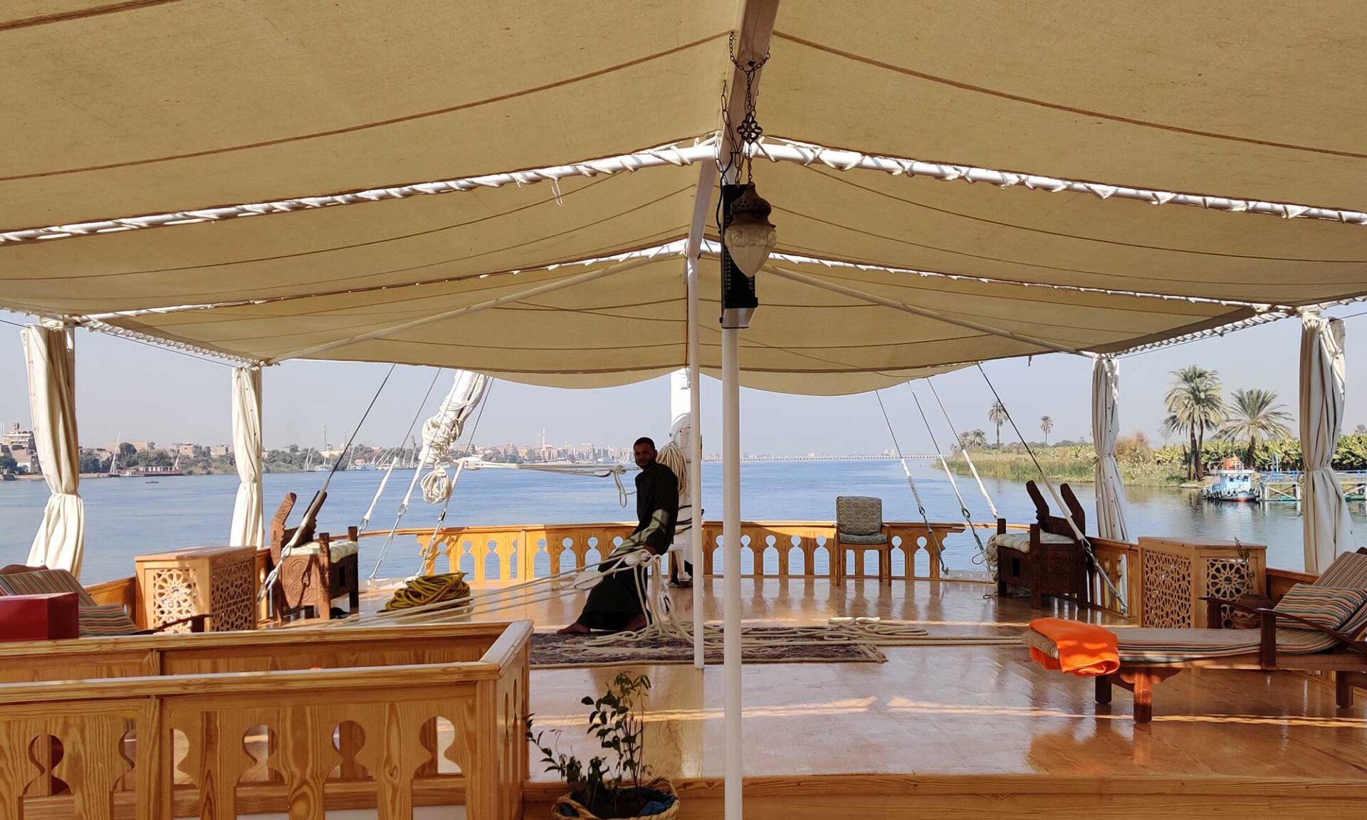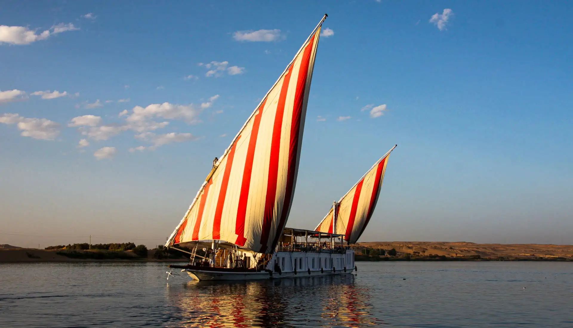 A Dahabiya is a traditional wooden sailing boat that glides gracefully along the Nile, offering an intimate and authentic travel experience. Unlike large cruise ships, Dahabiyas combine the charm of ancient-style sailing with modern comfort, allowing you to explore hidden temples, quiet islands, and riverside villages at a relaxed pace. With only a few cabins on board, you’ll enjoy personalized service, freshly prepared meals, and the tranquil beauty of the Nile — just as travelers did centuries ago.